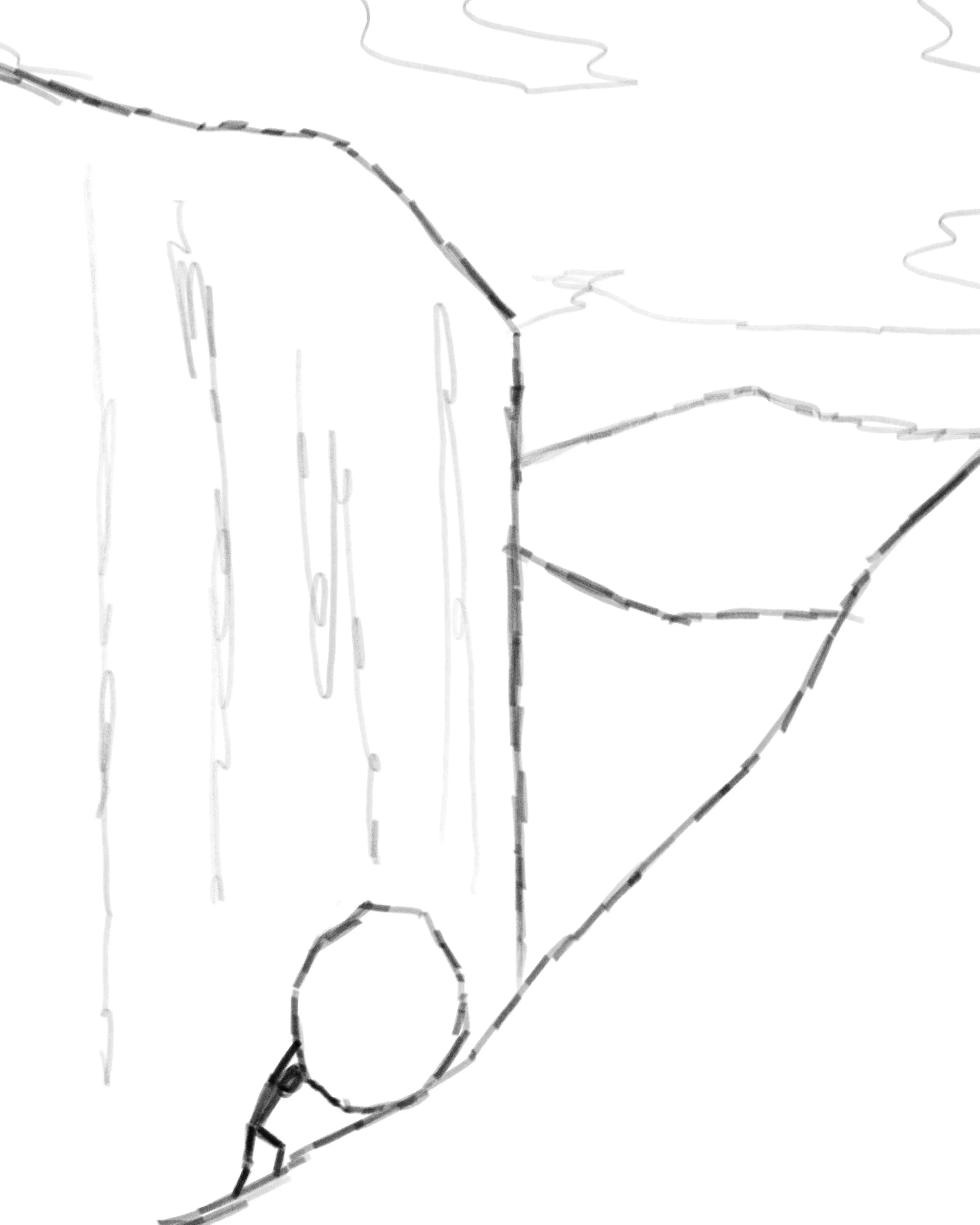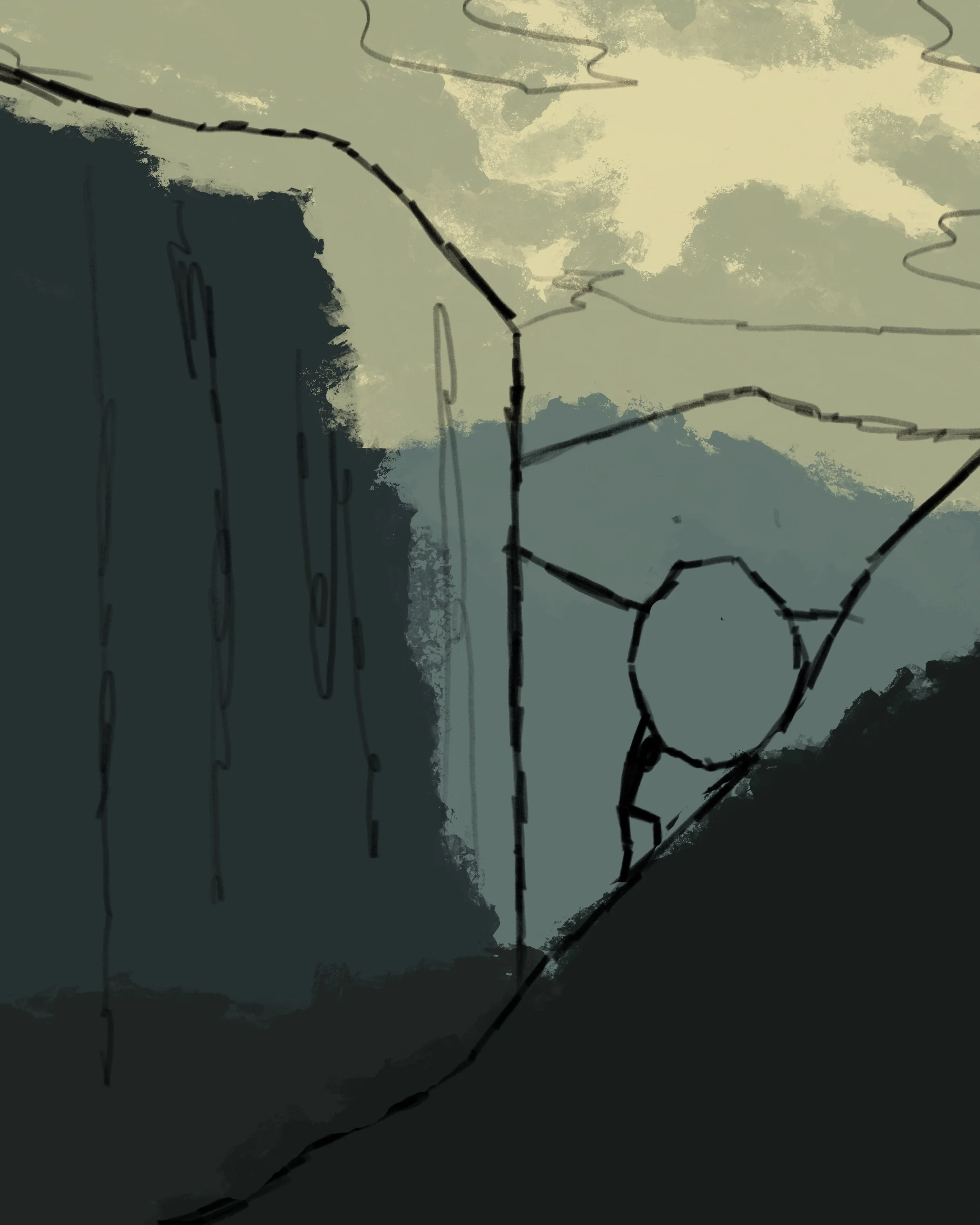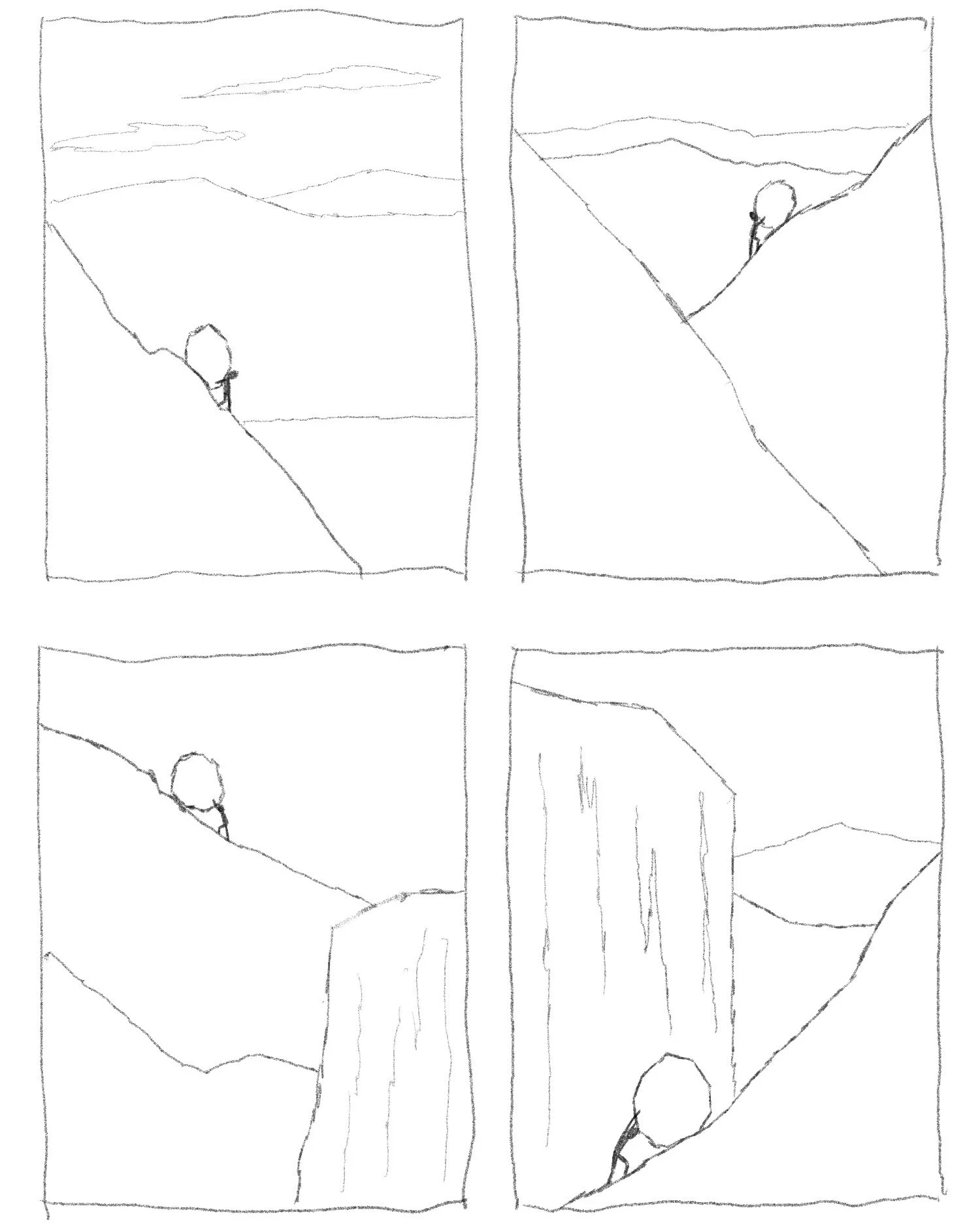 Once I’m happy with a sketch, I can recreate it full size and start to refine it. Those key elements start to take shape and I can finalize the composition.