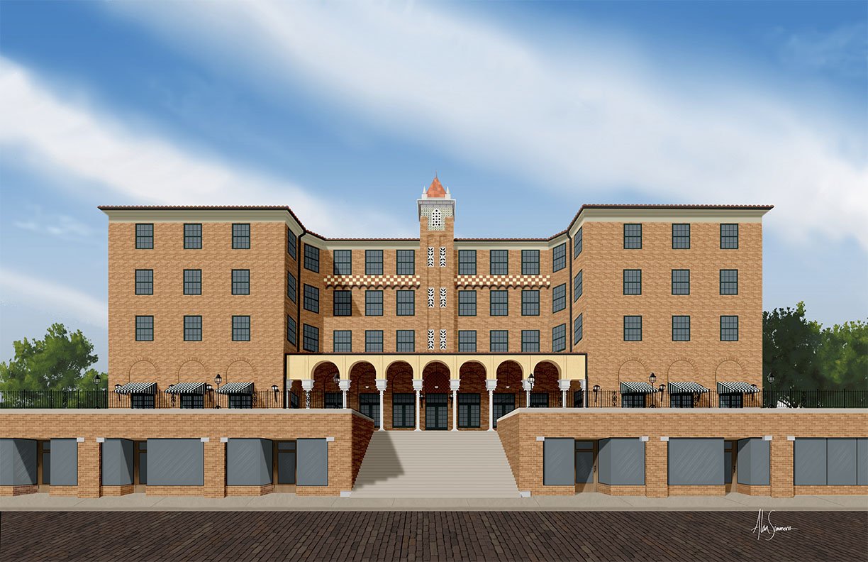 The Lane Hotel (2023) features a panoramic view of the grand Spanish Colonial-style structure against a bright summer sky. This stunning landmark in downtown Rogers, Arkansas was built in 1928, but faltered during the Great Depression. It became the Harris Hotel in 1935 and was called βThe Palace of the Ozarks.β It was the place to stay for notable celebrities of the day, including aviator Amelia Earhart and actor Errol Flynn. Hand-drawn digital art. Prints available in 30 x 20, 10 x 8, and 7 x 5.